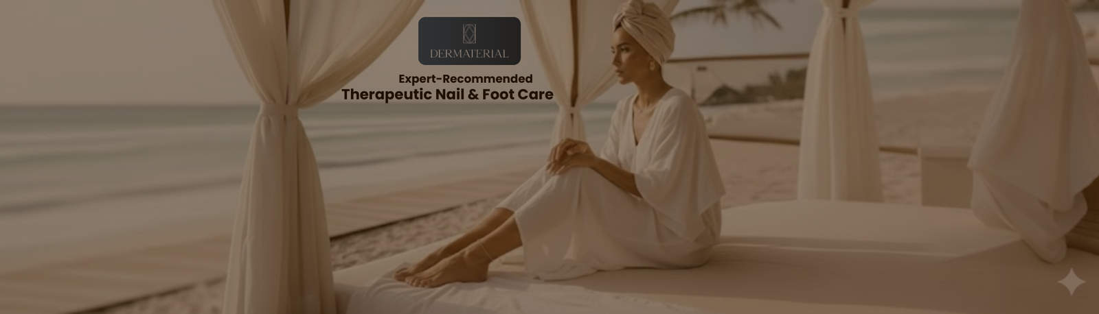 Dermaterial Nail and Foot Care Collection is intentionally compact, featuring four essential, therapeutic products that precisely target the highest-demand categories in foot and nail care: Repair, Growth, Deodorizing, and Intensive Healing.