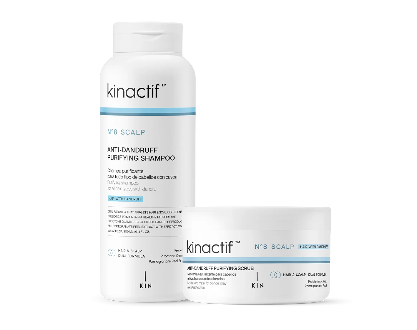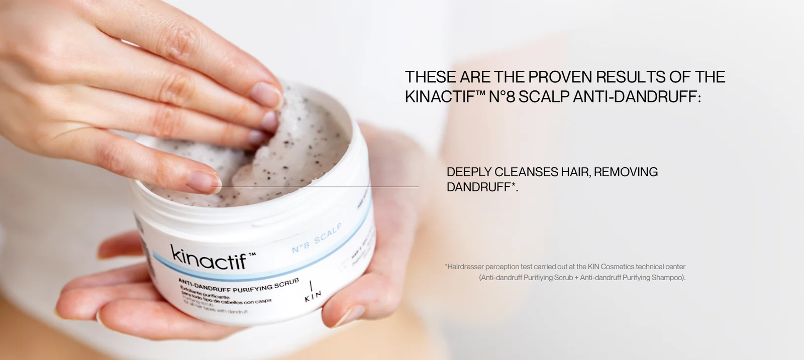 KINACTIF™ N°8 SCALP ANTI-DANDRUFF products are formulated to combat and prevent the appearance of dandruff, helping to balance the scalp, leaving hair clean and healthy.